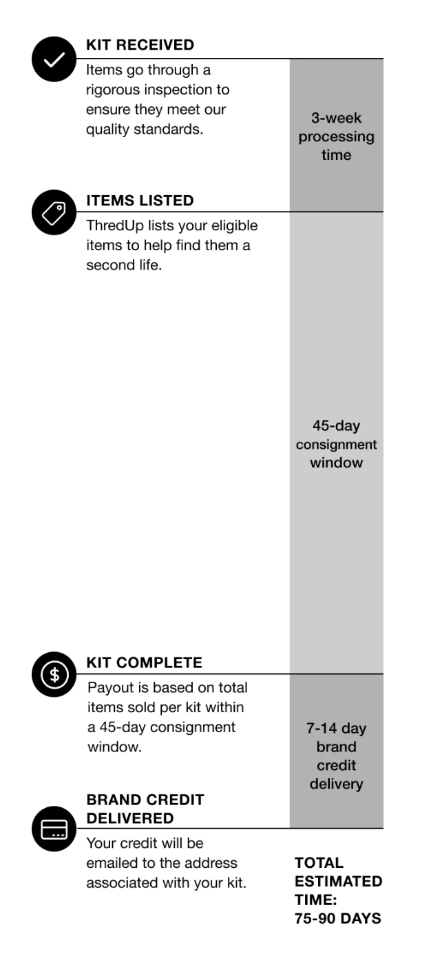 *Misfits Market credit is based on the total items sold per kit within a 45-day consignment window. Once that window has passed, please allow up to 4 weeks for Misfits Market credit to be sent in the form of an e-gift card to the email address associated with your ThredUp kit.